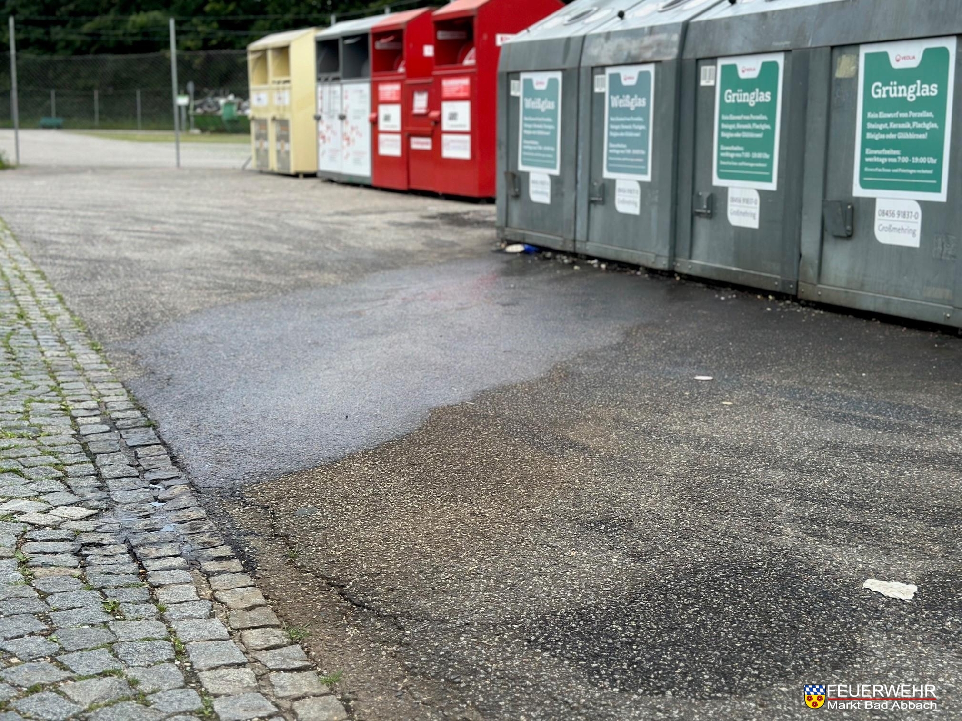 Unbekannte Täter veloren oder entsorgten im direkten Bereich vor den Altglascontainern eine große Menge des ölhaltigen Betriebsstoffes.