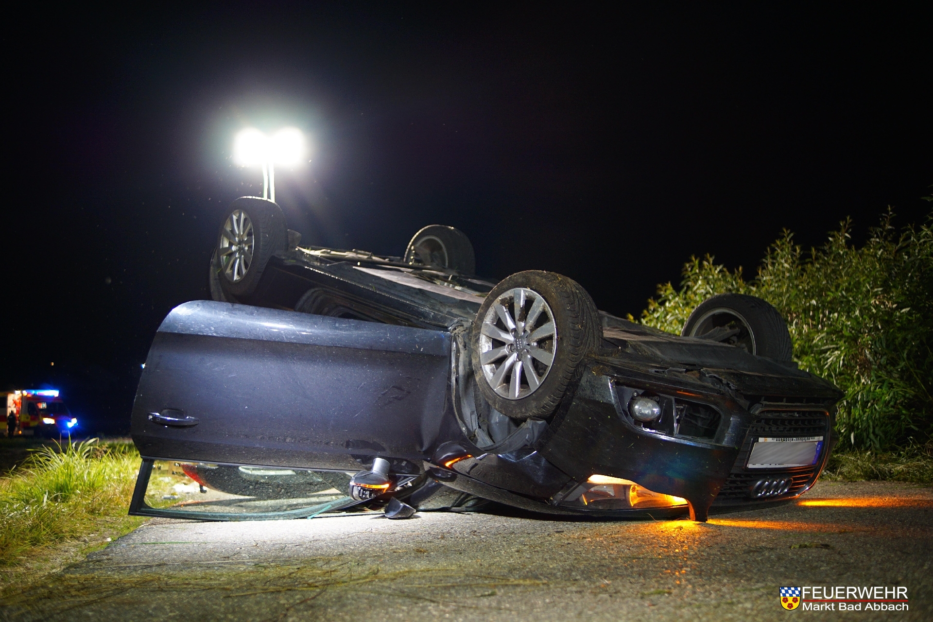 Aus bisher ungeklärter Ursache kam der Fahrer eines Audi von der Fahrbahn ab, überschlug sich und kam letztlich auf dem Dach zum Liegen.
