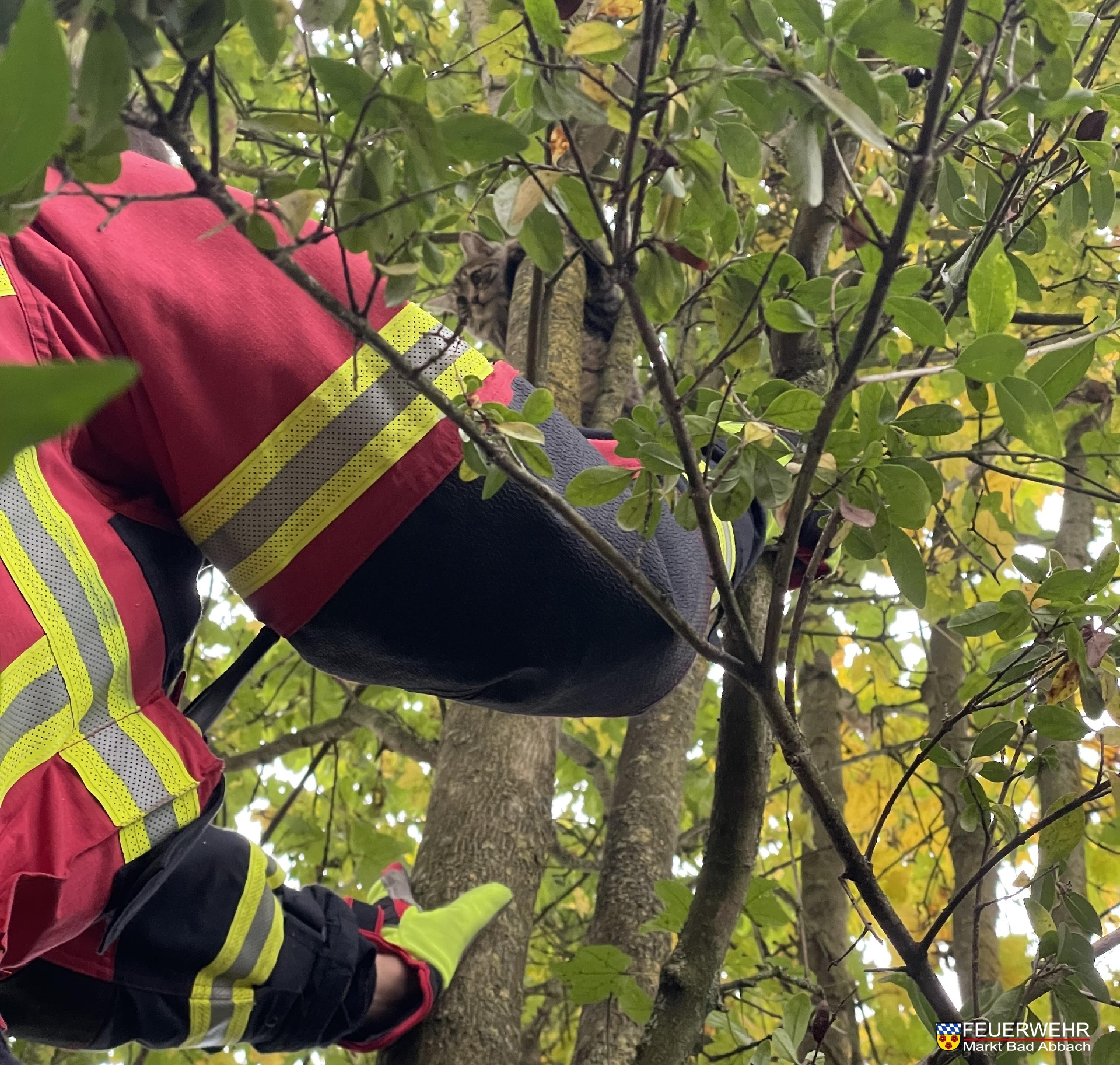 Gegen 15 Uhr am heutigen Feiertag wurden wir durch die ILS Landshut telefonisch über einer hilflose Babykatze auf Baum in der Bürgermeister-Mittenmeier-Straße alarmiert. Die Katze wurde durch die Feuerwehr wohlauf gerettet und den Eigentümern wieder übergeben.