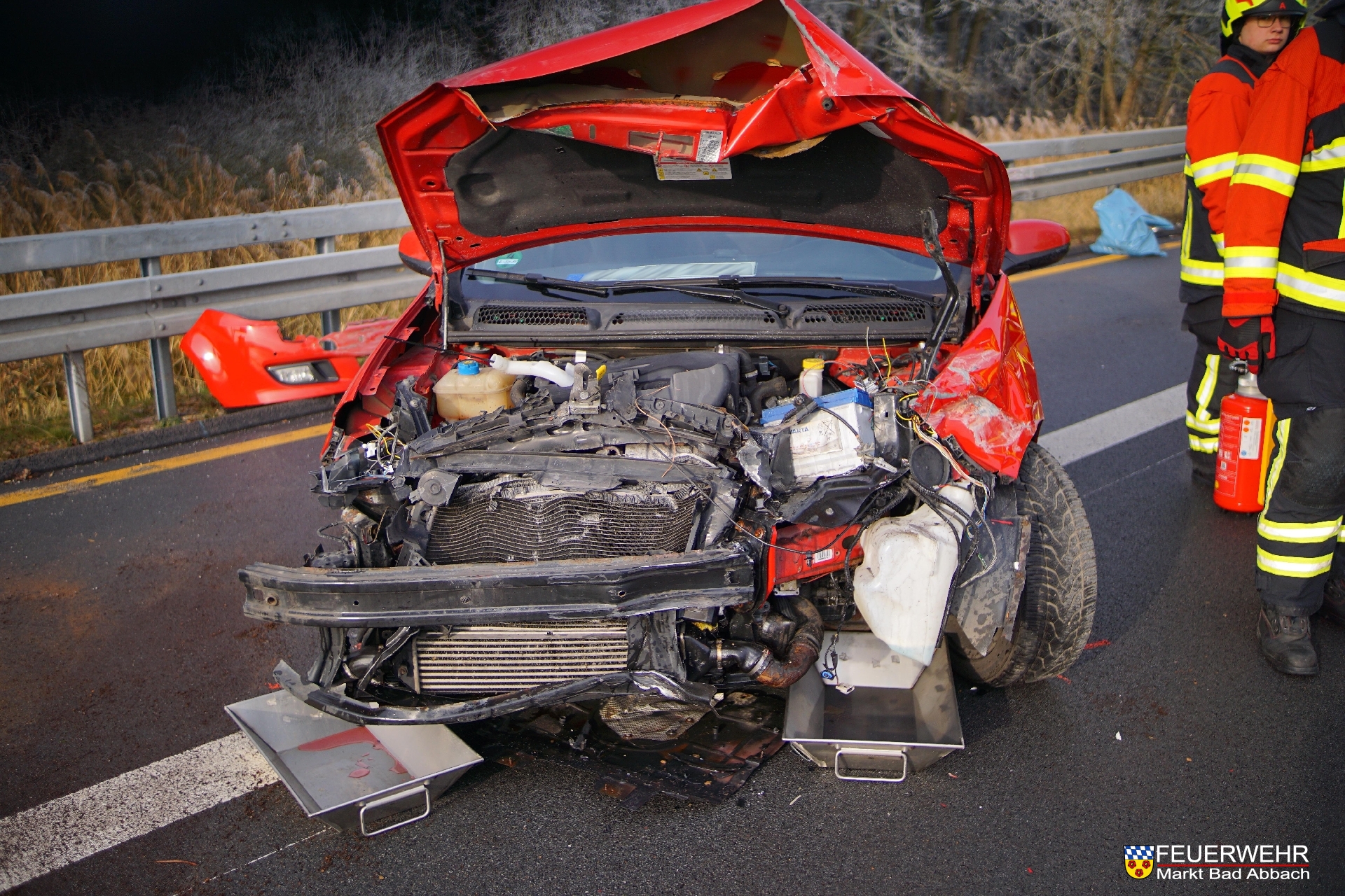 Ein alleinbeteiligter Pkw kam aus ungeklärter Ursache von der Fahrbahn ab, kollidierte mit der mittleren und rechten Schutzplanke und kam letztlich mittig der beiden Fahrspuren zum Stehen.
