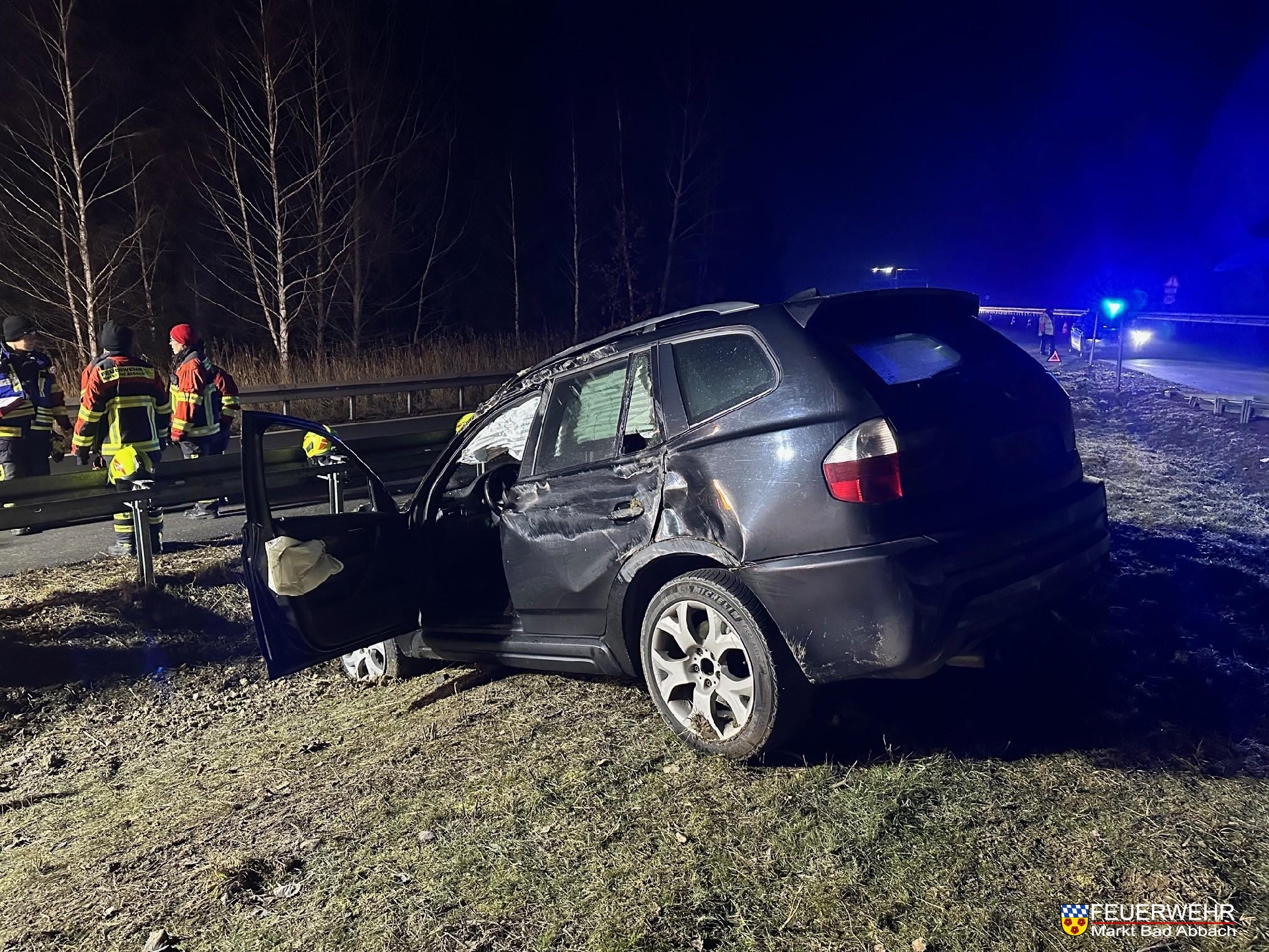 Ein BMW X3 kam alleinbeteiligt von der Fahrbahn ab, überschlug sich und kam letztlich wieder im Grünbereich zum Liegen.