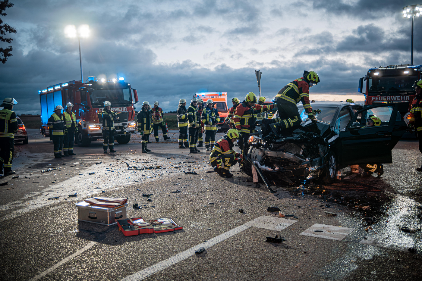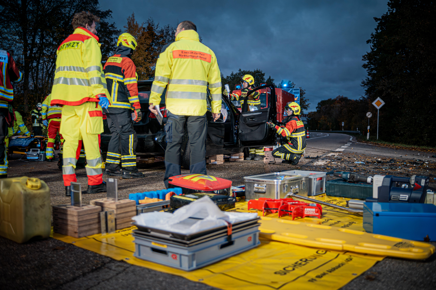Zwei verletzte Personen wurden bis zum Eintreffen des Rettungsdienstes medizinisch betreut, parallel dazu eine patientenschonende Rettung aus dem BMW 2er vorbereitet und letztlich in Abstimmung mit den eingesetzten Notärzten auch durchgeführt.