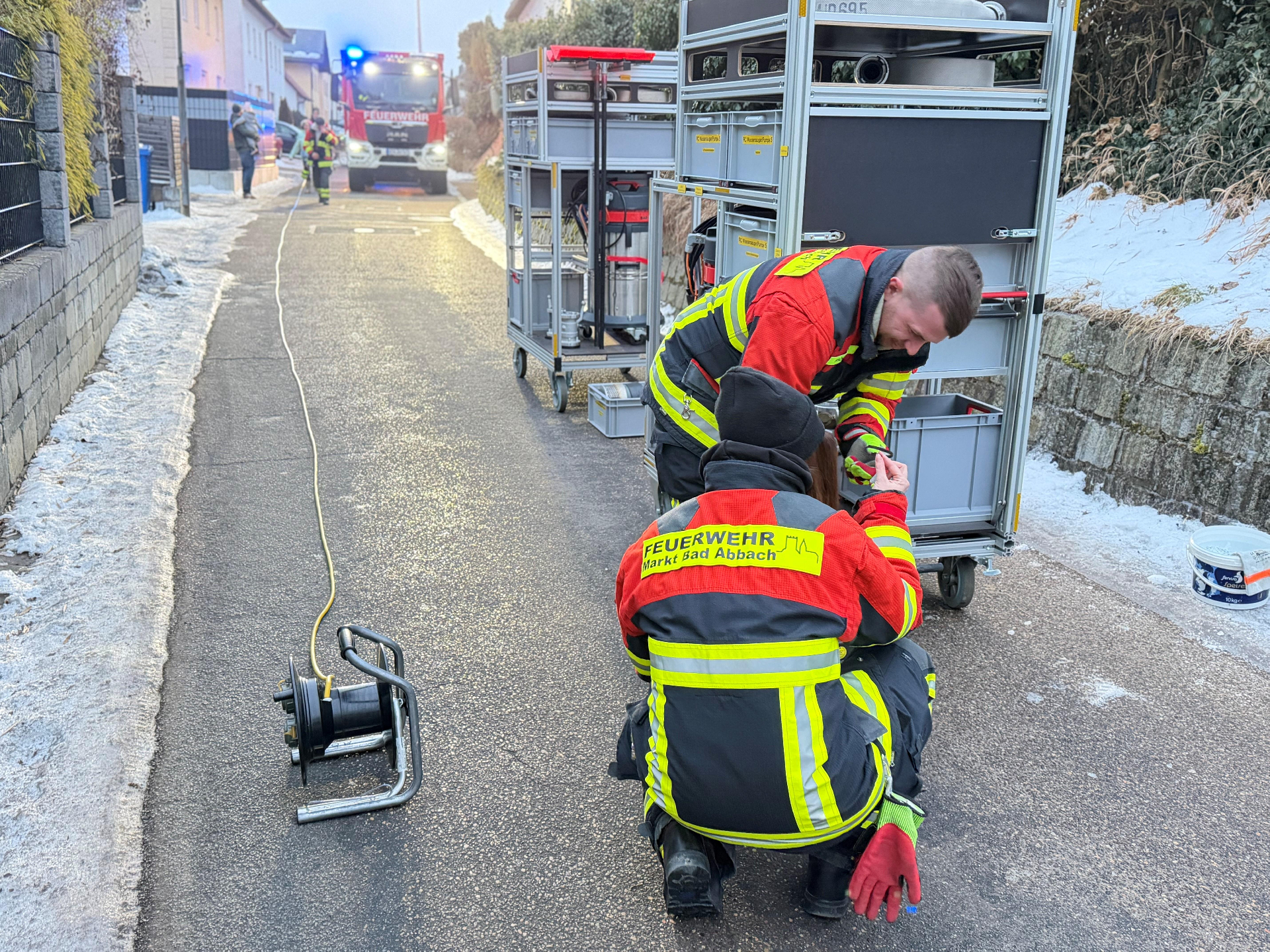 Auf Anforderung des örtlichen Wasserzweckverbands musste gegen 16:15 Uhr ein mit Wasser vollgelaufener Keller in einem Wohnhaus Hinter der Vest ausgepumpt werden.