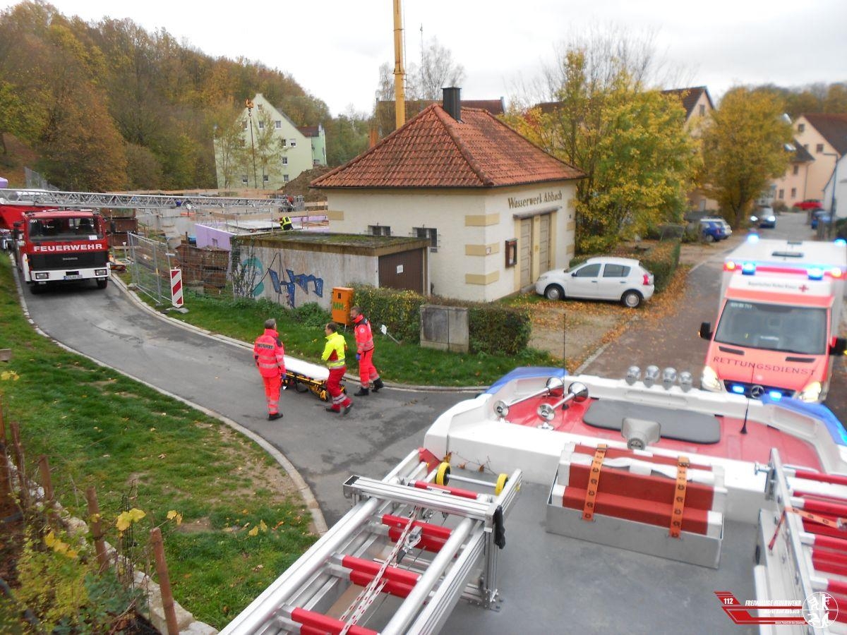 Gegen 08:00 Uhr am Montagmorgen wurden wir mit dem Stichwort ''Personenrettung mit Drehleiter'' in die hintere Vest alarmiert. Beim Eintreffen war ein Bauarbeiter circa 2,5 Meter in die Tiefe gestürzt und blieb verletzt im Kellerbereich liegen. Der Patient wurde bis Eintreffen des Rettungsdienstes durch uns Erstversorgt und anschließend mittels Schleifkorbtrage und Drehleiter patientenschonend nach oben verbracht. Die Einsatzstelle wurde der Polizei übergeben. Der Patient wurde in eine nahegelegene Klinik verbracht.