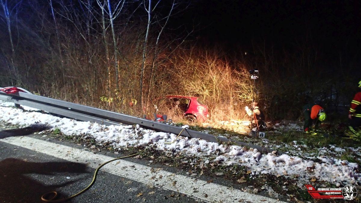 Auf Anforderung durch die Integrierte Leitstelle Regensburg wurden wir am Montagabend zusammen mit der Feuerwehr Poign zu einem Verkehrsunfall an die Autobahn-Anschlussstelle Bad Abbach alarmiert. Beim Eintreffen an der Einsatzstelle stellte sich folgende Lage heraus. Ein alleinbeteiligter Pkw kam von der Fahrbahn ab, fuhr eine Böschung hinunter und wurde durch eine anschließende Baumgruppe zum Stehen gebracht. In Absprache mit dem mitalarmierten Rettungsdienst musste eine patientenschonende Rettung mittels schwerem Rettungsgerät vorgenommen werden. Somit konnte die schwer verletzte Person zügig gerettet, in den Rettungswagen übergeben und anschließend in ein nahegelegenes Krankenhaus transportiert werden. Das Unfallfahrzeug wurde durch ein Abschleppunternehmen geborgen und abtransportiert.