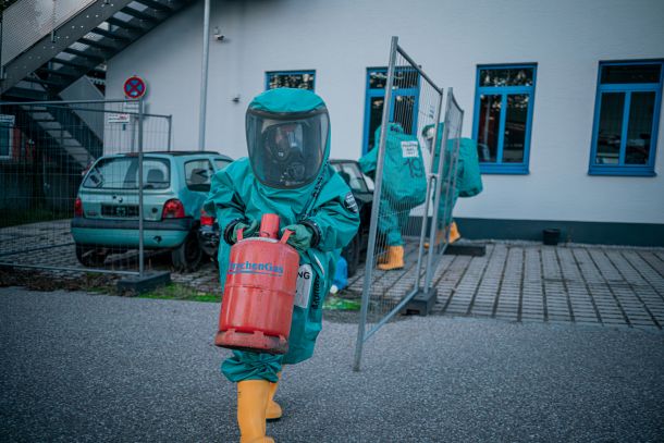 Jeder Atemschutzgeräteträger der Feuerwehr Markt Bad Abbach bekommt die Zusatzusbildung zum Tragen des Chemiekalienschutzanzuges.