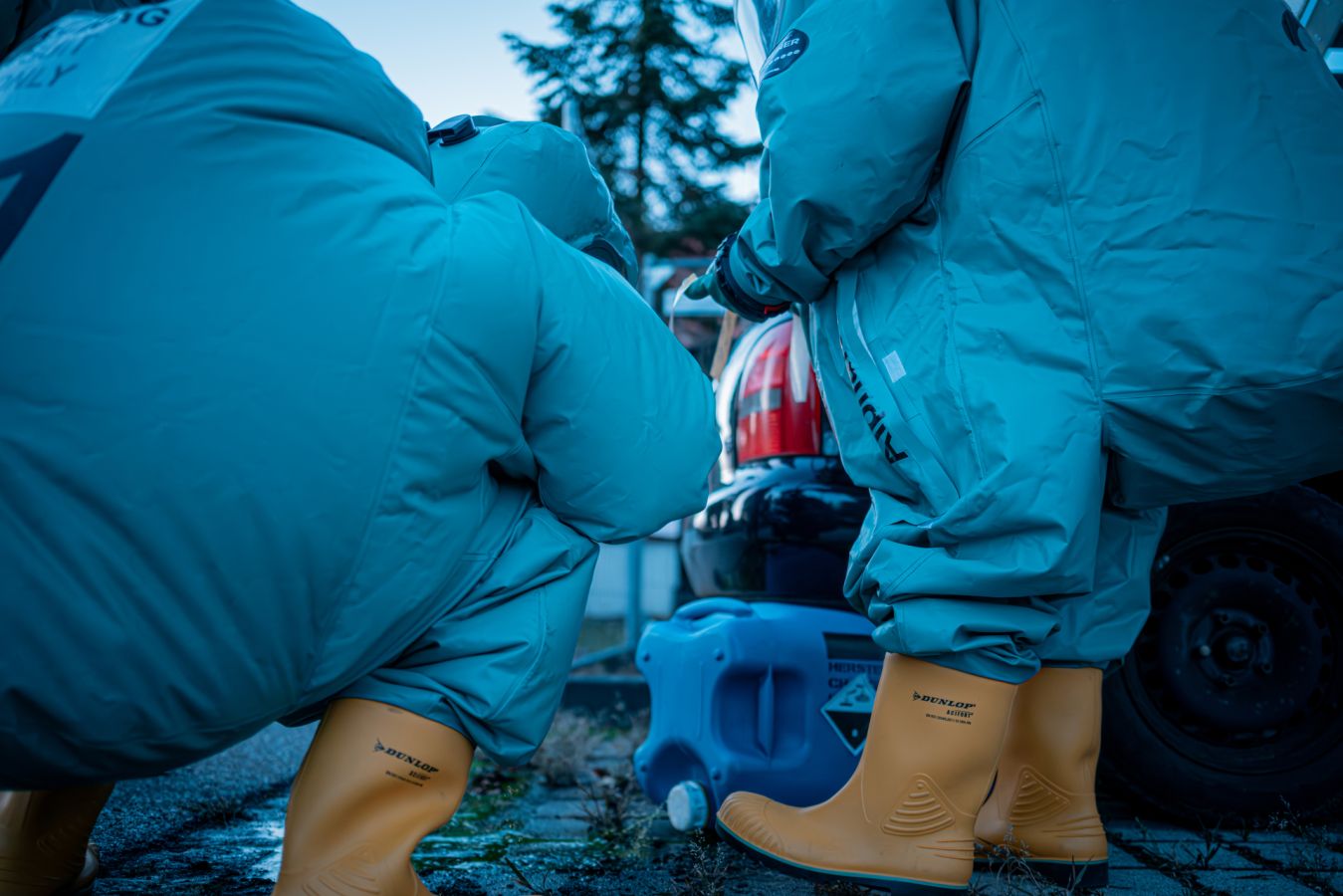 Für eine optimale Luftversorgung im Anzug trägt der CSA-Träger einen Pressluftatmer auf dem Rücken.