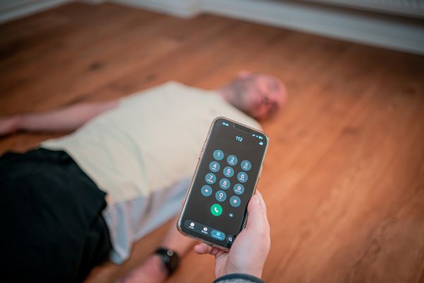 Anschließend verbringt sie ihn auf den Fußboden und setzt den Notruf ab.