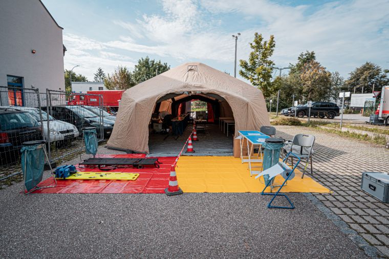 Entseuchung und Entstrahlung von Personen eingesetzt werden. Finanziert werden diese Anhänger aus Mitteln des Katastrophenschutzfonds des Freistaats Bayern.
